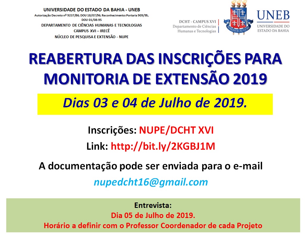 Para mais informações e inscrição, entre em contato com as criadoras do minicurso nos respectivos números: 74 9 9995-6620 e 74 999783932.